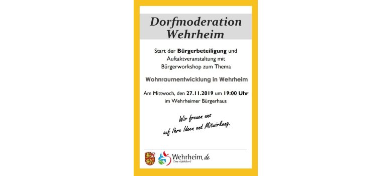 Am 27.11.2019 fand im Bürgerhaus Wehrheim die Auftaktveranstaltung zur Dorfmoderation Wehrheim statt.