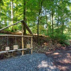 Von Frankfurt mit der S-Bahn 5 bis Friedrichsdorf. Weiter mit der Taunusbahn Richtung Brandoberndorf bis Haltestelle Bahnhof Saalburg/Lochmühle oder Bahnhof Wehrheim. Von dort aus zu Fuß in Richtung Schwimmbad Wehrheim.