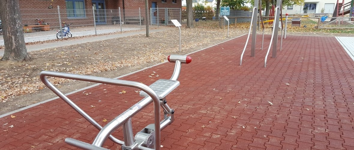 Auf dem Bild sehen Sie Sportgerät auf dem Bewegungsplatz in Wehrheim.