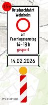 Unsere Ordnungsmensche habe gesagt, am Samstag, de 14.02. is die Durchfahrt von Wehrheim geschlossen von 2 bis 7 am Dach.