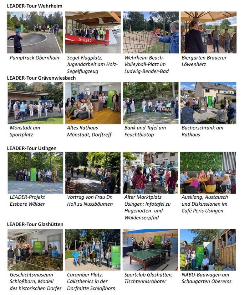Projekte, die durch LEADER oder das Regionalbudget gefördert werden, haben das Potenzial, unsere Region nachhaltig zu verändern. Bei der Besichtigung verschiedener Stationen ergaben sich gute Gelegenheiten, mit den Projektträgerinnen und Projektträgern ins Gespräch zu kommen und deren erfolgreiche Projekte im Hohen Taunus kennenzulernen. In diesem Jahr führten die LEADER-Touren zu verschiedenen Stationen durch Wehrheim, Grävenwiesbach, Usingen und Glashütten. Im nächsten Jahr sollen die Touren durch Neu-Anspach, Schmitten und Weilrod folgen.