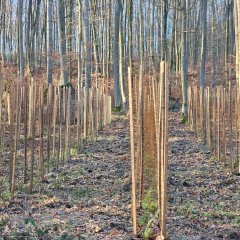 Die Testphase mit Wildschutz gegen Rotwild hat leider aufgrund des zu hohen Aufwandes den Praxistest nicht bestanden, gepflanzt wurden 130 Hemlock-Tannen als Versuch.