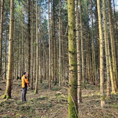 Der auf dem Foto zu sehende Fichtenbestand von  1 ha soll mit ca. 1.000 Weißtannen unterpflanzt und später dann noch mit Buchen ergänzt werden (sofern sich die Buchen nicht als Naturverjüngung automatisch einstellen), Waldbereich Pfaffenwiesbach.