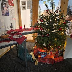 Die Mitarbeiterinnen und Mitarbeiter der Verwaltung haben den Eingangsbereich weihnachtlich geschmückt und zum Abschluss gab es warmen Tee, Orangensaft und ein wenig Gebäck. Danke an Tanja Kalte für die Unterstützung heute heute.