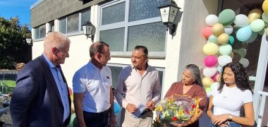 Bürgermeister Gregor Sommer konnte heute gemeinsam mit Ortsvorsteher Stefan Velte sowie weiteren Mitgliedern aus dem politischen Gremien dem neuen Pächter, Herrn Anjum Hussain, mit seiner Familie sowie dem ganzen Team herzlichen begrüßen.