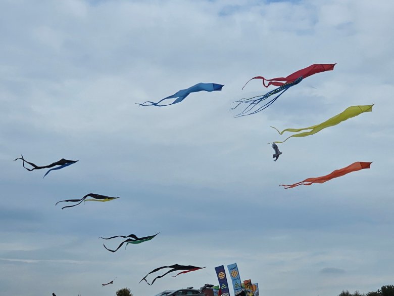 Am Sonntag, 19.10.2025 waren aber auch ideeale Wind-Bedingungen zum "Drachen steigen lassen". Ansonsten trocken, 9 Grad C, bedeckter Himmel. Ein Spaß für Groß und Klein...