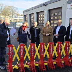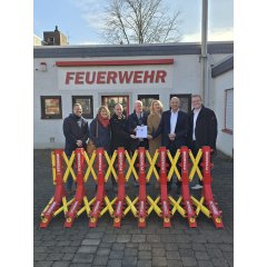 Eine Sperre kostet etwa EUR 16.000,-- netto , angeschafft werden sollen 12 Stück. Die Haushaltsmittel von somit insgesamt rund EUR 192.000,-- netto sind in allen drei Kommunen im Haushalt vorgesehen. Mit der heutigen Übergabe des Zuwendungsbescheides können wir als Kommunen im Rahmen der IKZ tätig werden und diese Sperren bestellen. Bei der Sperren handelt es sich um einen sogenannten mobilen und zertifizierten Überfahrschutz, der, um die Rettungswege freizuhalten, mit zwei Personen bewegt werden kann. Ein Dank geht hier auch dem Malerbetrieb Walter aus Wehrheim, der uns Lagermöglichkeiten für diese 12 Sperren und auch den weiteren Materialien für Katastrophenschutz zur Verfügung stellt.