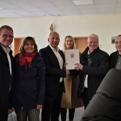 Neben Staatsminister Prof. Dr. Roman Poseck waren auch die beiden Landtagsabgeordneten, Frau Elke Barth für den Wahlkreis Hochtaunus I sowie Sebastian Sommer für den Wahlkreis Hochtaunus II zur Übergabe des Zuwendungsbescheides nach Wehrheim gekommen.